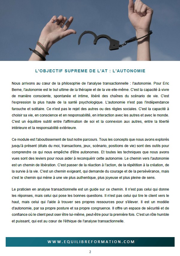 Résultat : vous êtes prêt à utiliser l’analyse transactionnelle de manière professionnelle, intégrée et sécurisée.