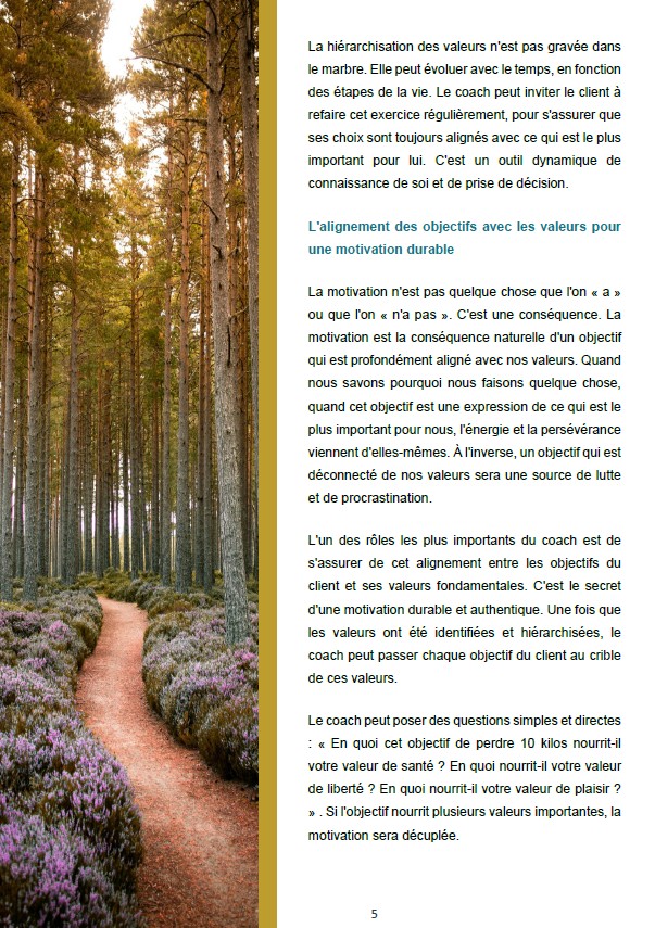 🎯 Résultat : vous accompagnez vos clients dans la redécouverte de leurs valeurs fondamentales et la construction d’une vision inspirante qui alimente leur motivation durable.