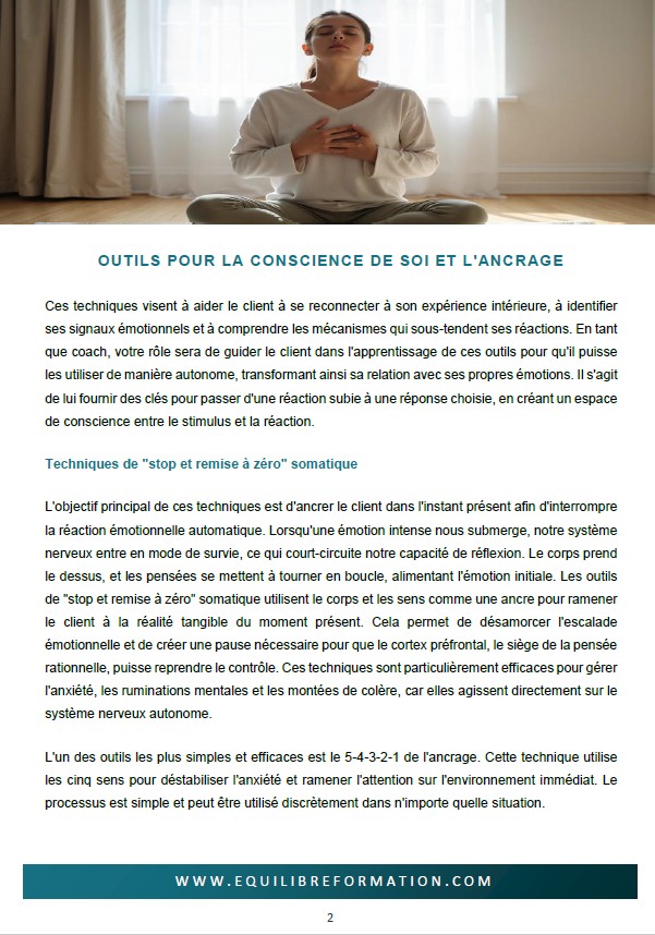 🎯 Résultat : Vous renforcez votre stabilité émotionnelle et posez les bases d’une posture professionnelle alignée et authentique.