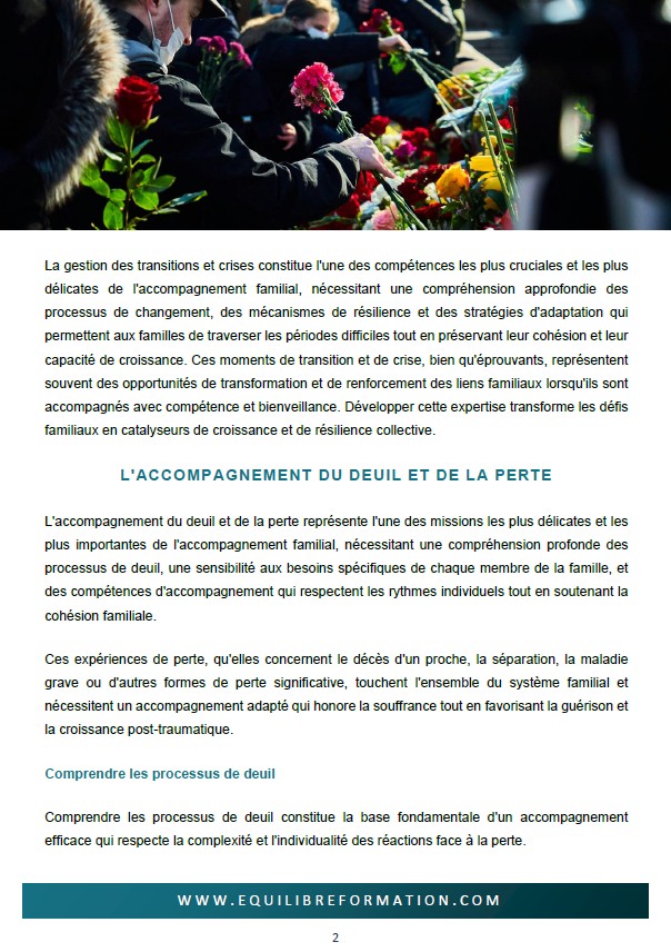 Vous apprendrez à intervenir dans des périodes sensibles (deuil, séparation, changement majeur) en adoptant une posture de soutien et de facilitation émotionnelle. Ce module vous prépare à être une ressource stable dans les moments de turbulence.