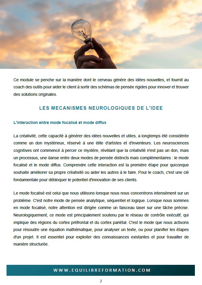 MODULE 7 : NEUROSCIENCES DE LA CRÉATIVITÉ ET DE LA FLEXIBILITÉ COGNITIVE