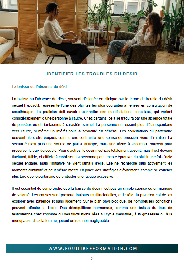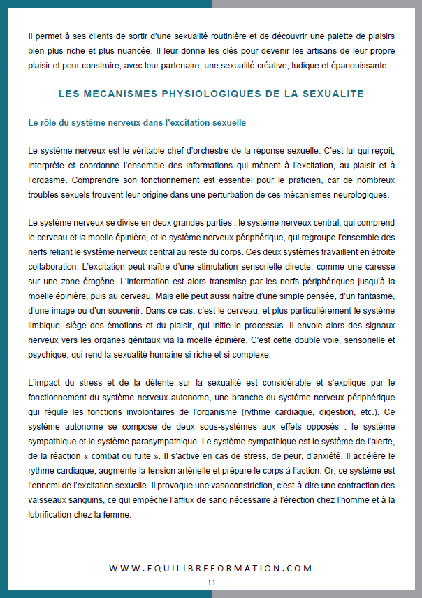 Résultat : vous maîtrisez les fondements du fonctionnement sexuel et pouvez expliquer les mécanismes corporels avec clarté et pédagogie.